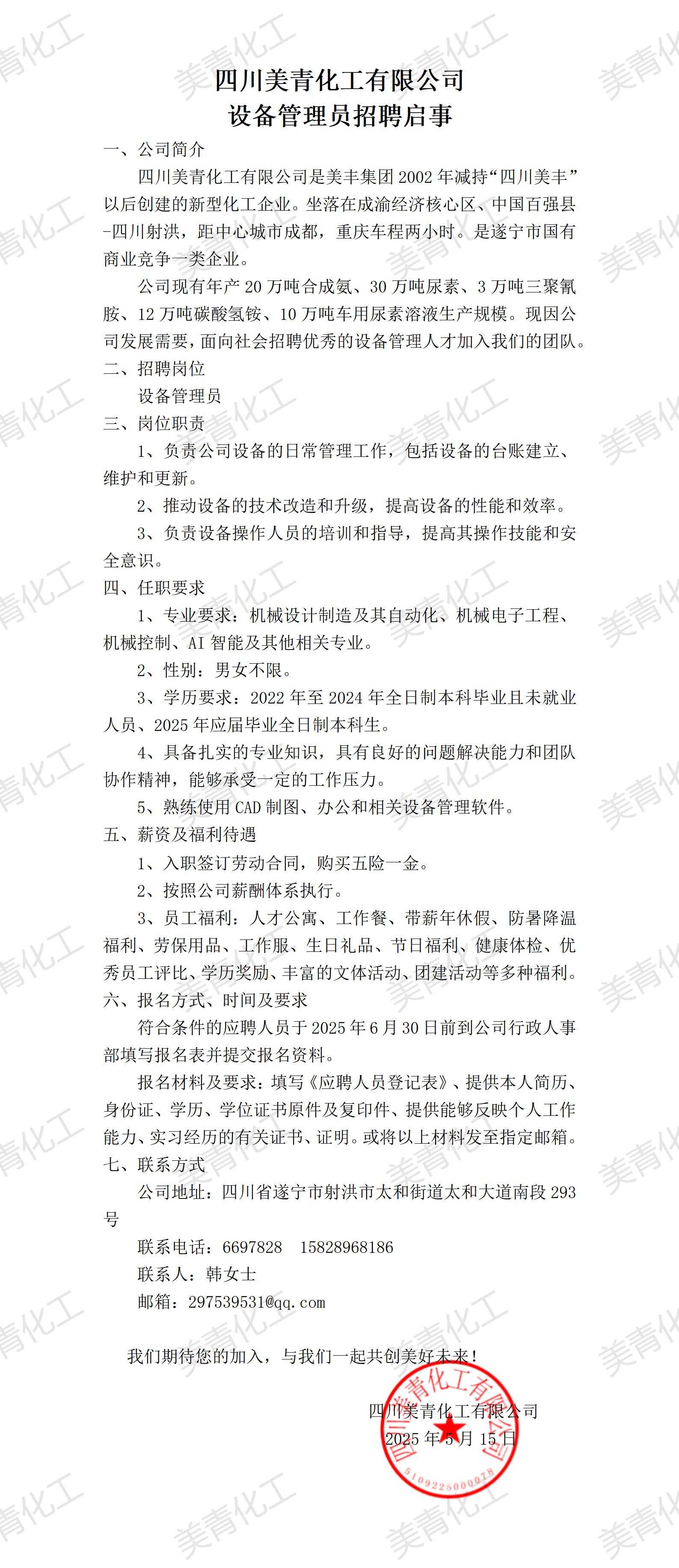 設備管理員招聘啟事