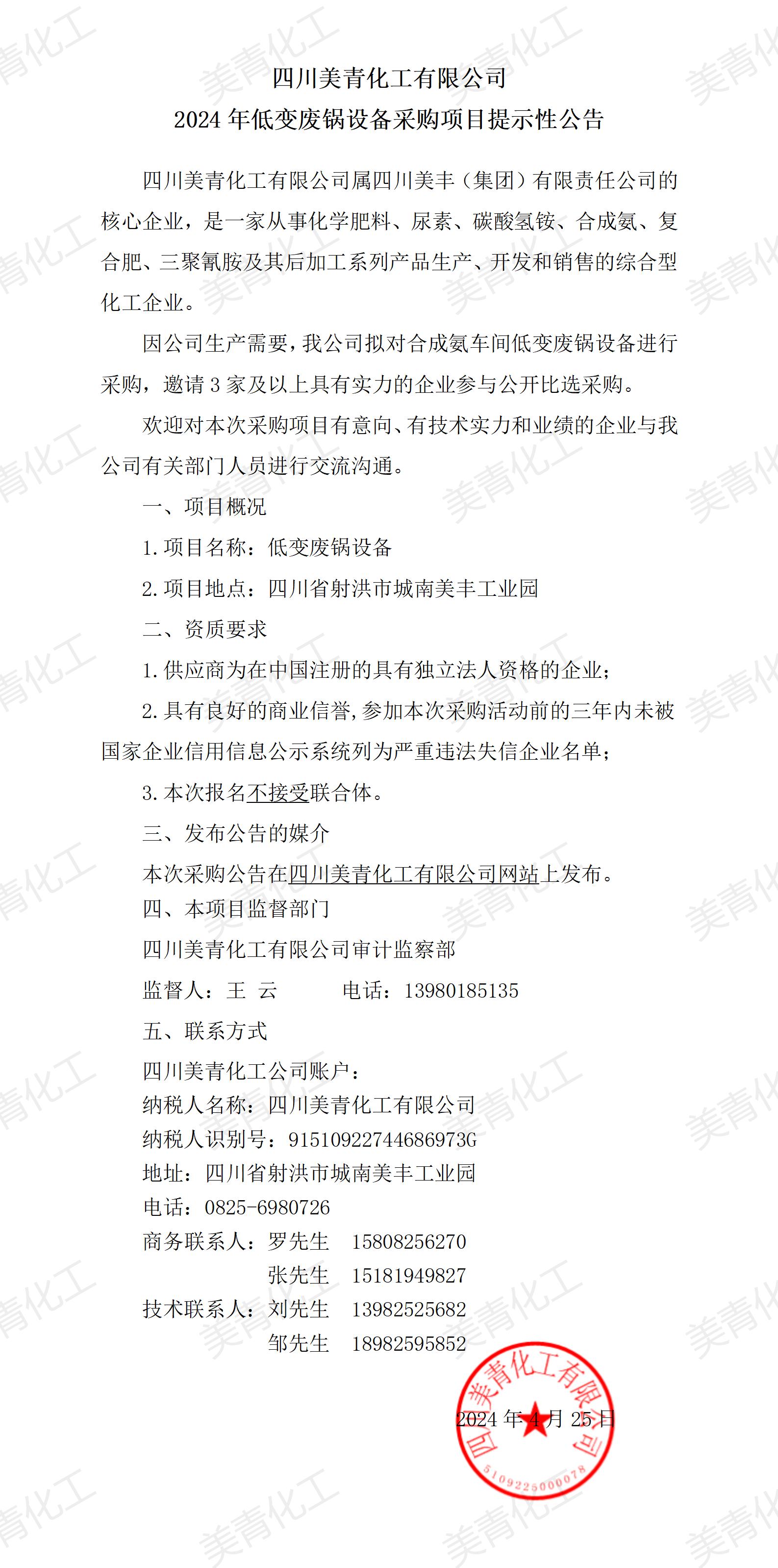 2024年低變廢鍋設(shè)備采購項(xiàng)目提示性公告