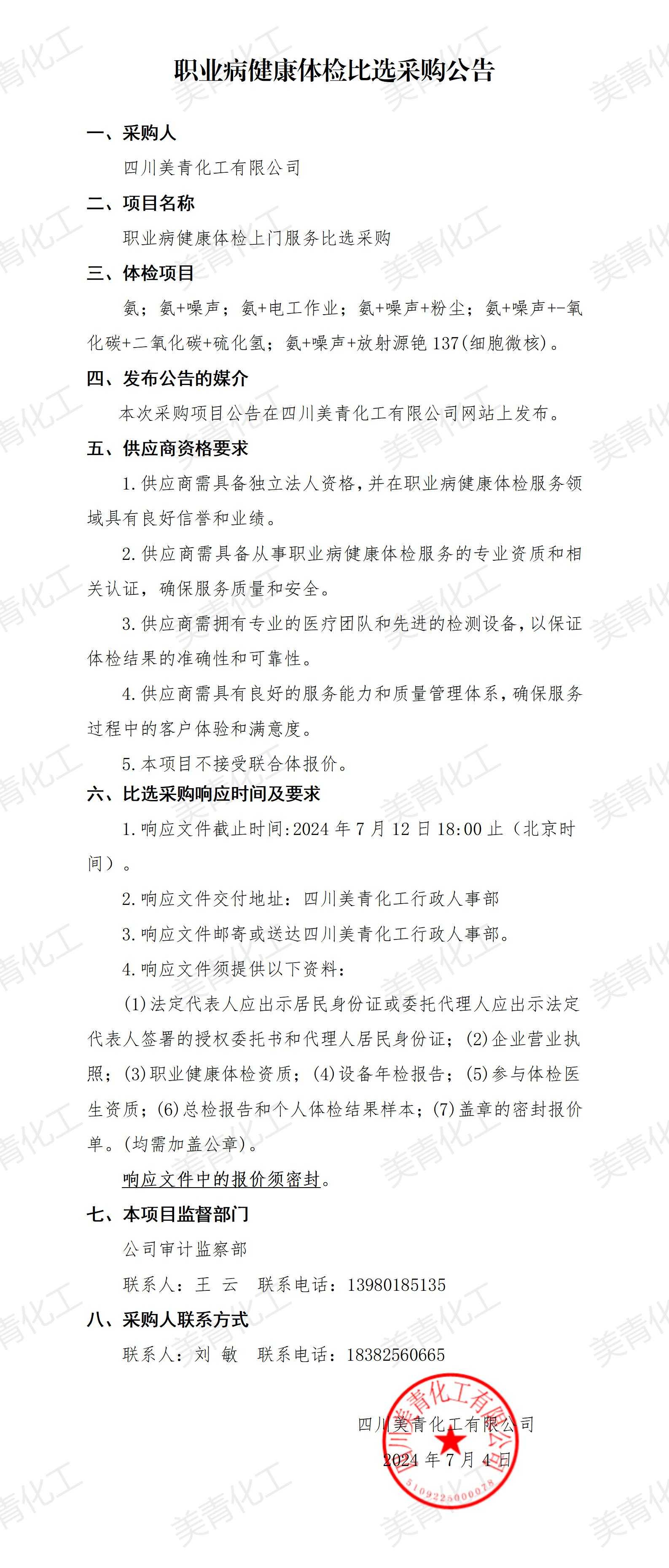 職業(yè)病健康體檢比選采購公告