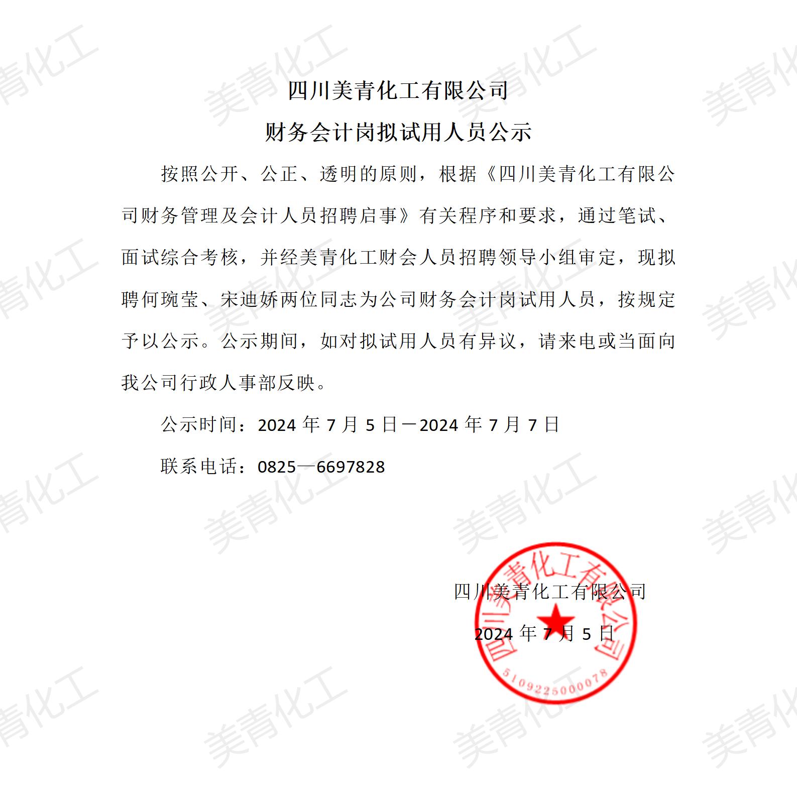 財務會計崗擬試用人員公示